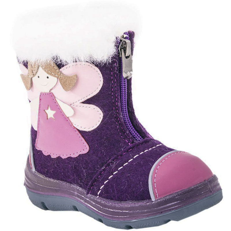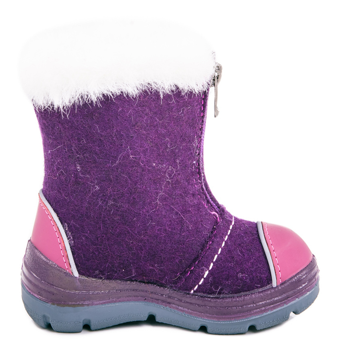 Материал верха итальянский войлок. Носочная часть защищена кожаным отрезным носком с покрытием, что придаёт носочной части износостойкость и защиту от химических реагентов. Есть светоотражающие элементы. Подошва модели литьевая, двуслойная, что придаёт ей лёгкость и гибкость. Материал подкладки - шерстяной мех из натуральной овечьей шерсти отлично сохраняет тепло, отводит влагу от ноги, придает дополнительный комфорт. Фиксация на ножке достигается благодаря молнии, отлично раскрывающей модель во время процесса обувания.